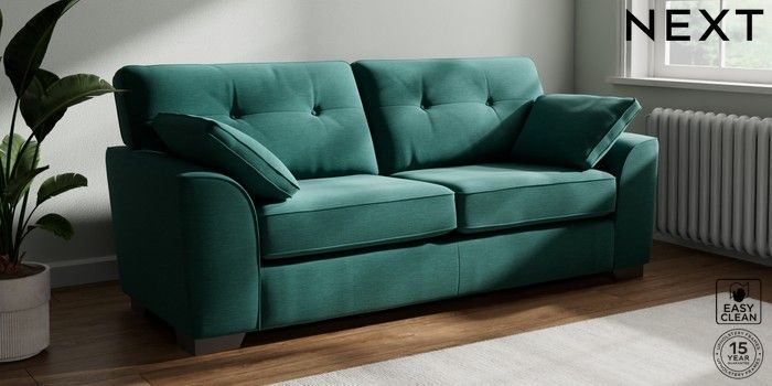 7.2.10 Buy Stamford Buttoned Back 3 Seater Sofa Fine Chenille Easy Clean Dark Juniper Green Large Square Angle - Gunmetal from the Next UK online shop Click here to use our accessible website