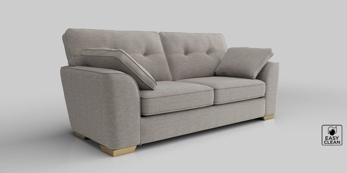6.12.1 Buy Stamford Buttoned Back 3 Seater Sofa Fine Chenille Easy Clean Light Steel Grey Large Square Angle - Brushed Brass from the Next UK online shop Click here to use our accessible website