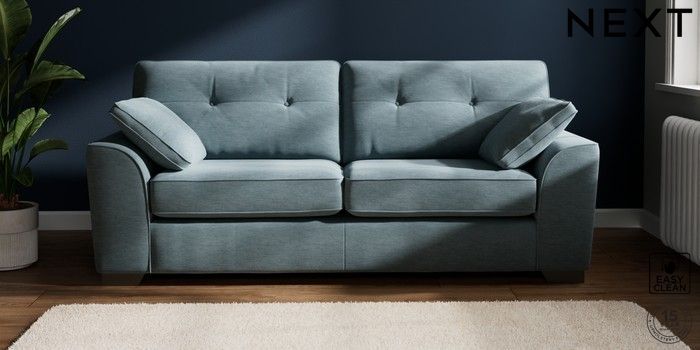 6.12.1 Buy Stamford Buttoned Back 3 Seater Sofa Fine Chenille Easy Clean Mid Blue Large Square Angle - Gunmetal from the Next UK online shop Click here to use our accessible website