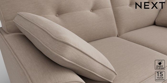 6.11.4 Buy Stamford Buttoned Back 3 Seater Sofa Fine Chenille Easy Clean Mid Taupe Brown Large Square Angle - Mid from the Next UK online shop Click here to use our accessible website