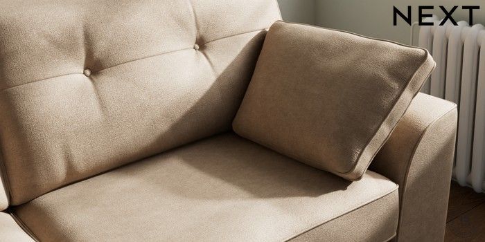 7.2.10 Buy Stamford Buttoned Back 3 Seater Sofa Luxe Chenille Mid Camel Beige Large Square Angle - Light from the Next UK online shop Click here to use our accessible website