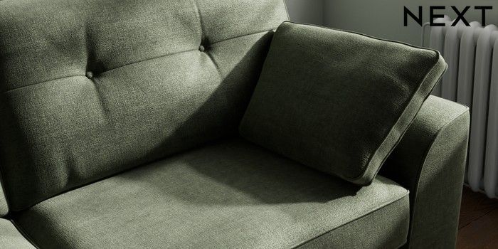 7.2.6 Buy Stamford Buttoned Back 3 Seater Sofa Luxe Chenille Mid Green Large Square Angle - Dark from the Next UK online shop Click here to use our accessible website