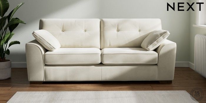 7.0.3 Buy Stamford Buttoned Back 3 Seater Sofa Luxe Chenille Oyster Large Square Angle - Mid from the Next UK online shop Click here to use our accessible website