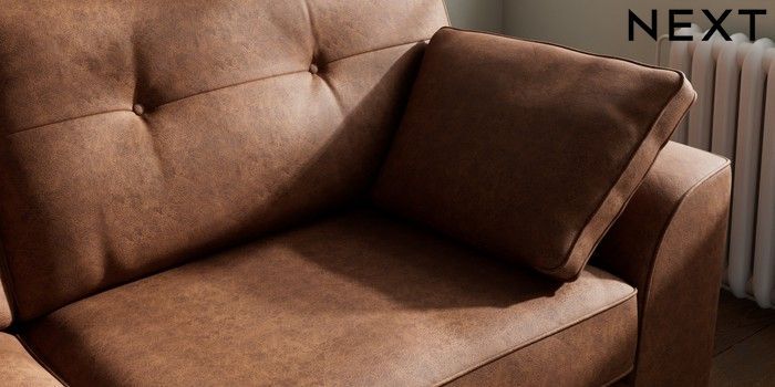 7.3.1 Buy Stamford Buttoned Back 3 Seater Sofa Monza Faux Leather Easy Clean Chestnut Brown Large Square Angle - Chrome Metal from the Next UK online shop Click here to use our accessible website