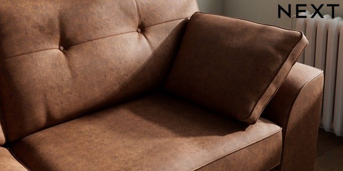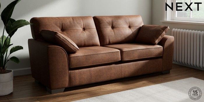 7.3.1 Buy Stamford Buttoned Back 3 Seater Sofa Monza Faux Leather Easy Clean Chestnut Brown Large Square Angle - Gunmetal from the Next UK online shop Click here to use our accessible website