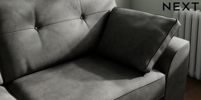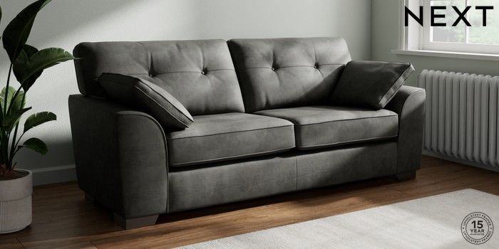 7.3.1 Buy Stamford Buttoned Back 3 Seater Sofa Monza Faux Leather Easy Clean Dark Grey Large Square Angle - Gunmetal from the Next UK online shop Click here to use our accessible website