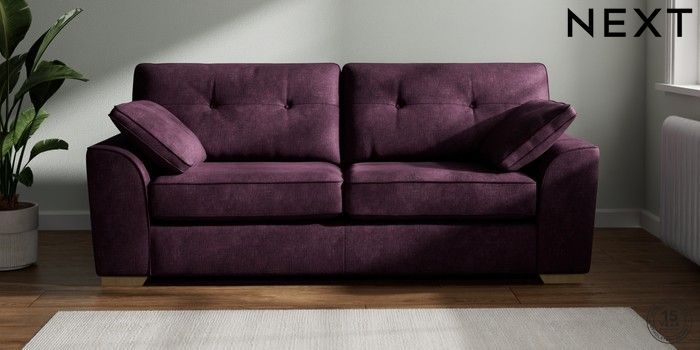 7.2.10 Buy Stamford Buttoned Back 3 Seater Sofa Plush Chenille Dark Plum Purple Large Square Angle - Light from the Next UK online shop Click here to use our accessible website