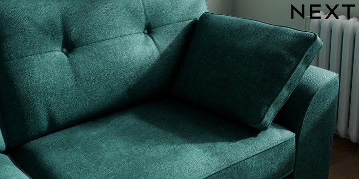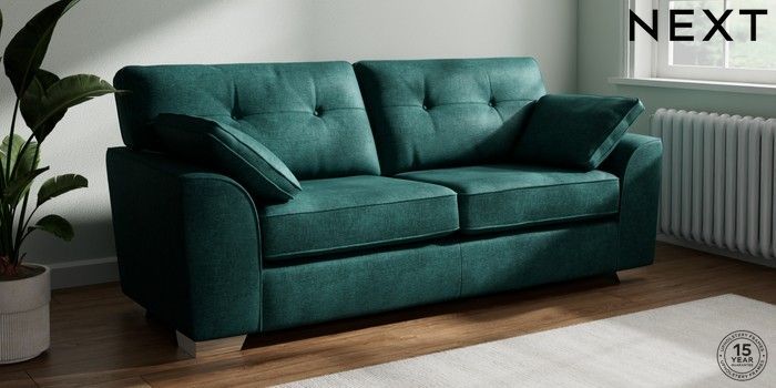 7.2.10 Buy Stamford Buttoned Back 3 Seater Sofa Plush Chenille Dark Teal Green Large Square Angle - Chrome Metal from the Next UK online shop Click here to use our accessible website