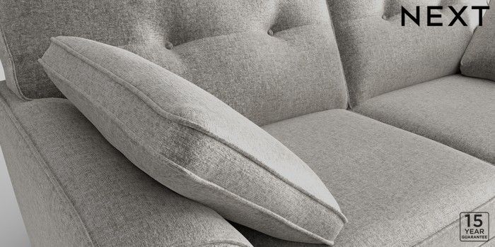6.11.4 Buy Stamford Buttoned Back 3 Seater Sofa Plush Chenille Light Grey Large Square Angle - Brushed Brass from the Next UK online shop Click here to use our accessible website