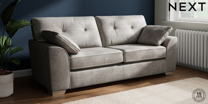 7.2.10 Buy Stamford Buttoned Back 3 Seater Sofa Plush Chenille Light Grey Large Square Angle - Chrome Metal from the Next UK online shop Click here to use our accessible website