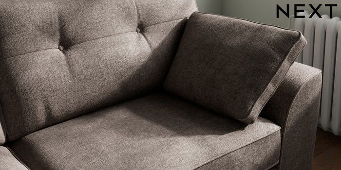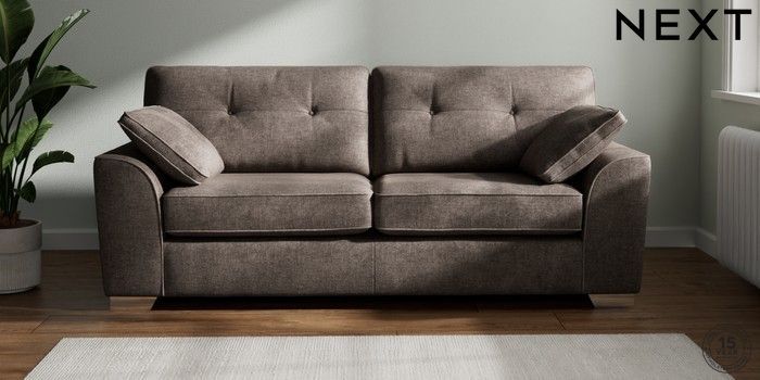 7.2.10 Buy Stamford Buttoned Back 3 Seater Sofa Plush Chenille Mink Brown Large Square Angle - Chrome Metal from the Next UK online shop Click here to use our accessible website