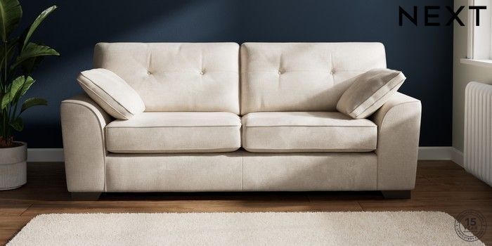 7.2.10 Buy Stamford Buttoned Back 3 Seater Sofa Plush Chenille Oyster Large Square Angle - Gunmetal from the Next UK online shop Click here to use our accessible website