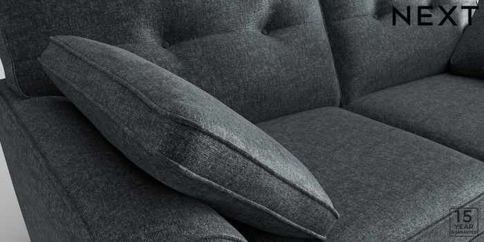 6.11.4 Buy Stamford Buttoned Back 3 Seater Sofa Plush Chenille Slate Blue Large Square Angle - Brushed Brass from the Next UK online shop Click here to use our accessible website