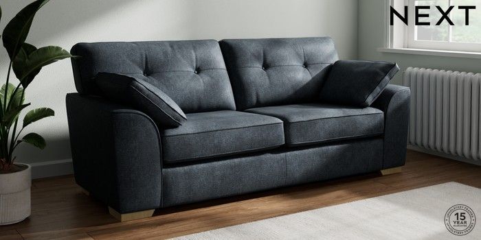7.2.10 Buy Stamford Buttoned Back 3 Seater Sofa Plush Chenille Slate Blue Large Square Angle - Light from the Next UK online shop Click here to use our accessible website