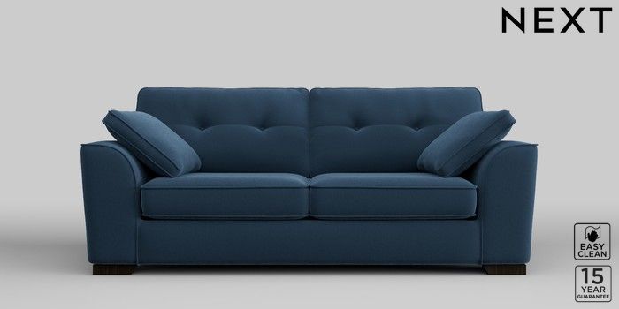 6.11.8 Buy Stamford Buttoned Back 3 Seater Sofa Plush Velvet Easy Clean Airforce Blue Large Square Angle - Dark from the Next UK online shop Click here to use our accessible website