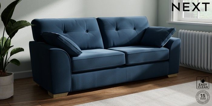 7.2.10 Buy Stamford Buttoned Back 3 Seater Sofa Plush Velvet Easy Clean Airforce Blue Large Square Angle - Light from the Next UK online shop Click here to use our accessible website