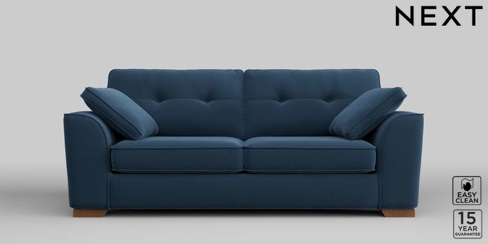 6.11.4 Buy Stamford Buttoned Back 3 Seater Sofa Plush Velvet Easy Clean Airforce Blue Large Square Angle - Mid from the Next UK online shop Click here to use our accessible website