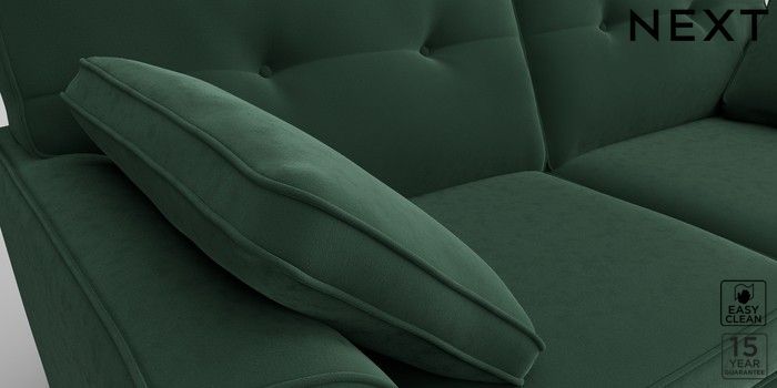 6.11.8 Buy Stamford Buttoned Back 3 Seater Sofa Plush Velvet Easy Clean Bottle Green Large Square Angle - Brushed Brass from the Next UK online shop Click here to use our accessible website