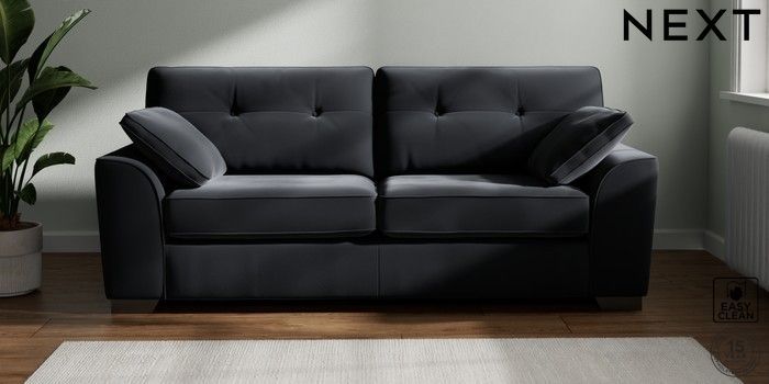7.3.1 Buy Stamford Buttoned Back 3 Seater Sofa Plush Velvet Easy Clean Charcoal Grey Large Square Angle - Gunmetal from the Next UK online shop Click here to use our accessible website