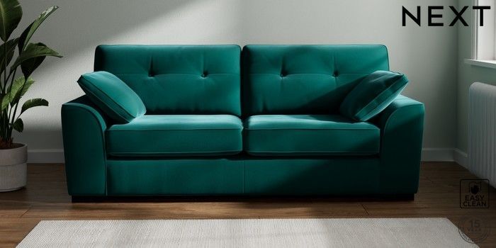 7.2.10 Buy Stamford Buttoned Back 3 Seater Sofa Plush Velvet Easy Clean Juniper Green Large Square Angle - Dark from the Next UK online shop Click here to use our accessible website