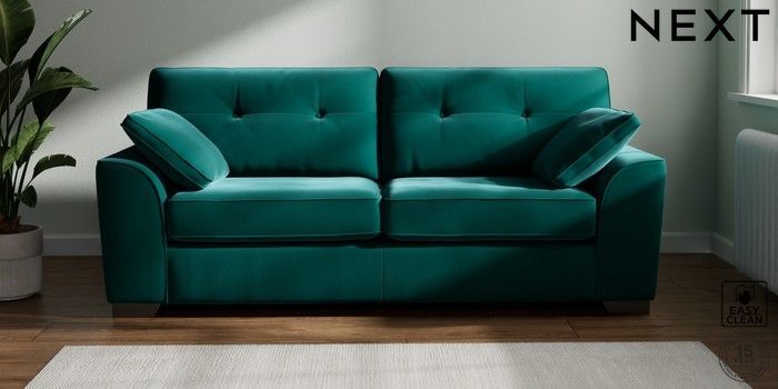 7.3.1 Buy Stamford Buttoned Back 3 Seater Sofa Plush Velvet Easy Clean Juniper Green Large Square Angle - Gunmetal from the Next UK online shop Click here to use our accessible website