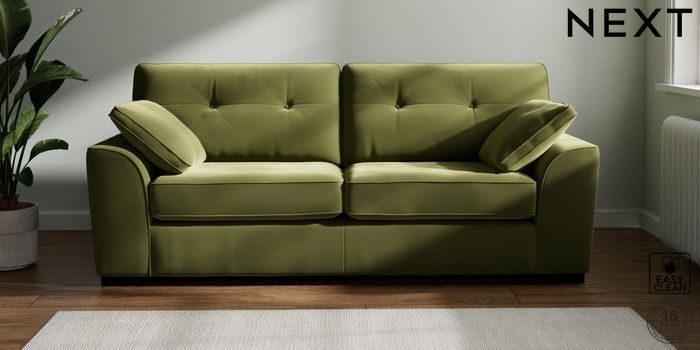 7.2.6 Buy Stamford Buttoned Back 3 Seater Sofa Plush Velvet Easy Clean Mid Olive Green Large Square Angle - Dark from the Next UK online shop Click here to use our accessible website