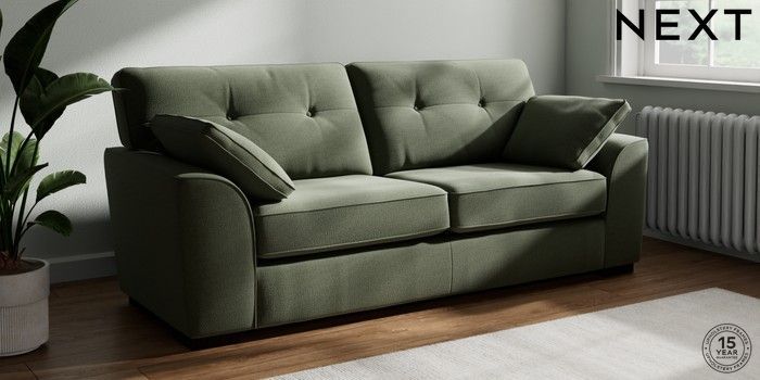 7.2.10 Buy Stamford Buttoned Back 3 Seater Sofa Relaxed Linen Look Dark Green Large Square Angle - Dark from the Next UK online shop Click here to use our accessible website