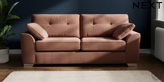 6.12.1 Buy Stamford Buttoned Back 3 Seater Sofa Relaxed Linen Look Light Rust Brown Large Square Angle - Chrome Metal from the Next UK online shop Click here to use our accessible website