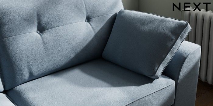 7.2.10 Buy Stamford Buttoned Back 3 Seater Sofa Relaxed Linen Look Mid Blue Large Square Angle - Dark from the Next UK online shop Click here to use our accessible website