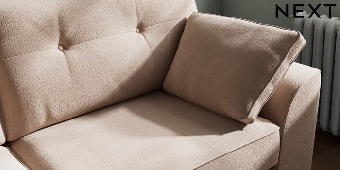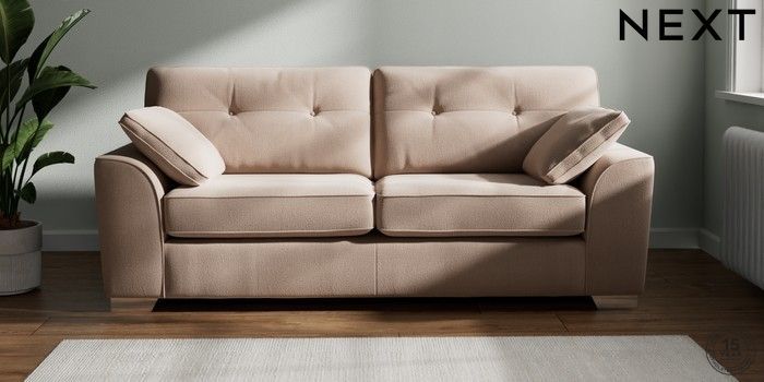 7.2.10 Buy Stamford Buttoned Back 3 Seater Sofa Relaxed Linen Look Mid Natural Large Square Angle - Chrome Metal from the Next UK online shop Click here to use our accessible website