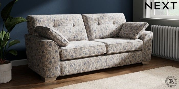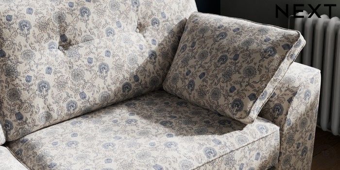 7.3.1 Buy Stamford Buttoned Back 3 Seater Sofa Relaxed Linen Look Print Woodblock Floral Blue Large Square Angle - Chrome Metal from the Next UK online shop Click here to use our accessible website