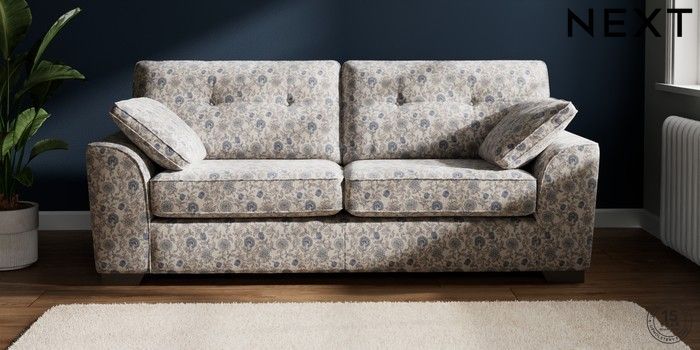 7.3.1 Buy Stamford Buttoned Back 3 Seater Sofa Relaxed Linen Look Print Woodblock Floral Blue Large Square Angle - Gunmetal from the Next UK online shop Click here to use our accessible website