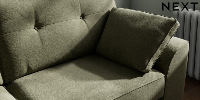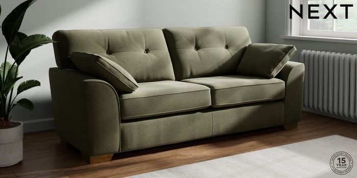 7.2.10 Buy Stamford Buttoned Back 3 Seater Sofa Ripple Chenille Mid Moss Green Large Square Angle - Brushed Brass from the Next UK online shop Click here to use our accessible website
