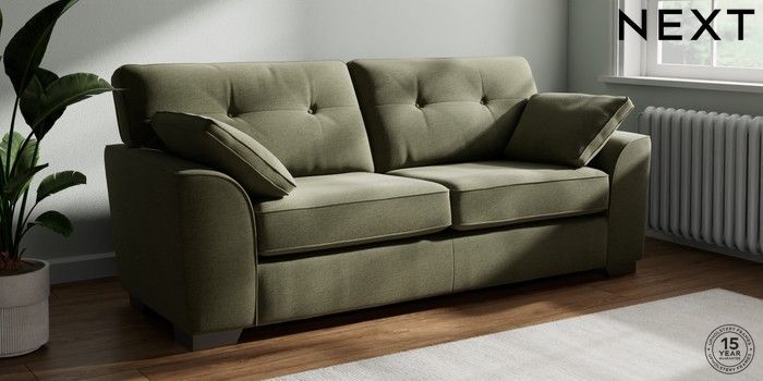 7.2.10 Buy Stamford Buttoned Back 3 Seater Sofa Ripple Chenille Mid Moss Green Large Square Angle - Gunmetal from the Next UK online shop Click here to use our accessible website