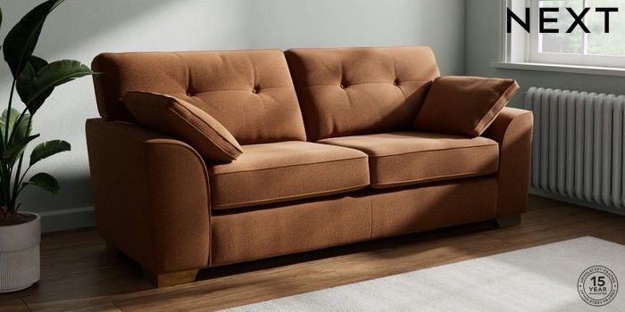 7.2.10 Buy Stamford Buttoned Back 3 Seater Sofa Ripple Chenille Mid Rust Brown Large Square Angle - Brushed Brass from the Next UK online shop Click here to use our accessible website
