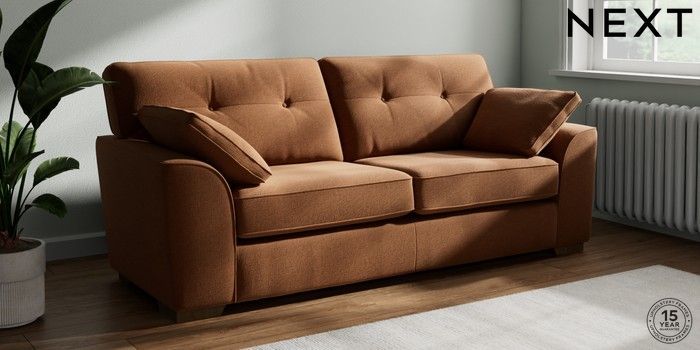 7.2.10 Buy Stamford Buttoned Back 3 Seater Sofa Ripple Chenille Mid Rust Brown Large Square Angle - Mid from the Next UK online shop Click here to use our accessible website
