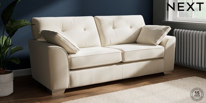 7.2.10 Buy Stamford Buttoned Back 3 Seater Sofa Ripple Chenille Oyster Large Square Angle - Chrome Metal from the Next UK online shop Click here to use our accessible website