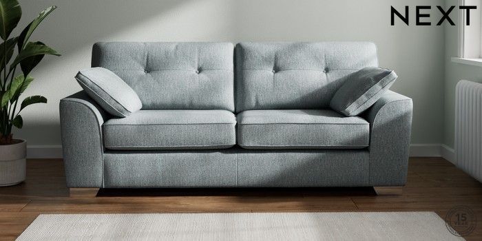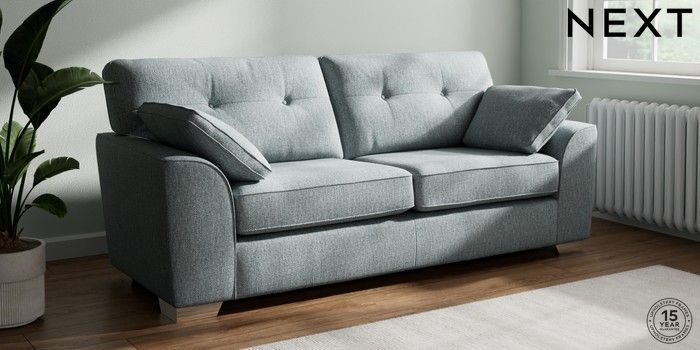 7.2.10 Buy Stamford Buttoned Back 3 Seater Sofa Chunky Weave Mid Blue Large Square Angle - Chrome Metal from the Next UK online shop Click here to use our accessible website