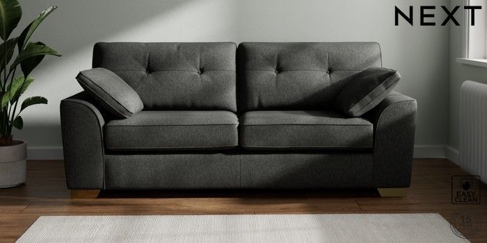 7.2.10 Buy Stamford Buttoned Back 3 Seater Sofa Tweedy Blend Easy Clean Charcoal Grey Large Square Angle - Brushed Brass from the Next UK online shop Click here to use our accessible website