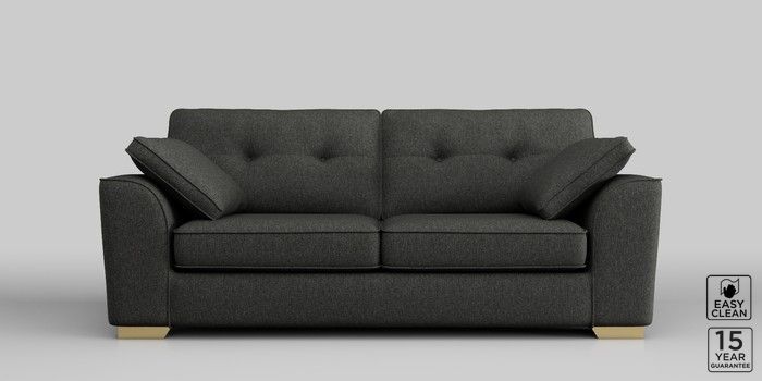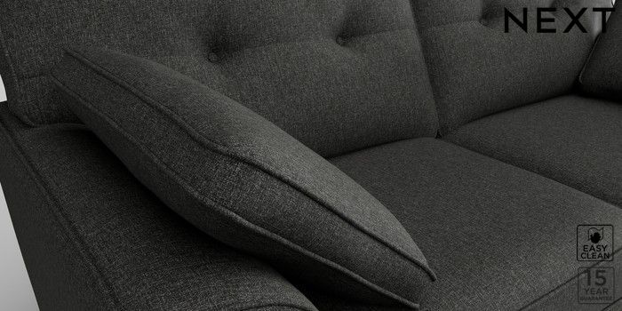 6.11.4 Buy Stamford Buttoned Back 3 Seater Sofa Tweedy Blend Easy Clean Charcoal Grey Large Square Angle - Brushed Brass from the Next UK online shop Click here to use our accessible website