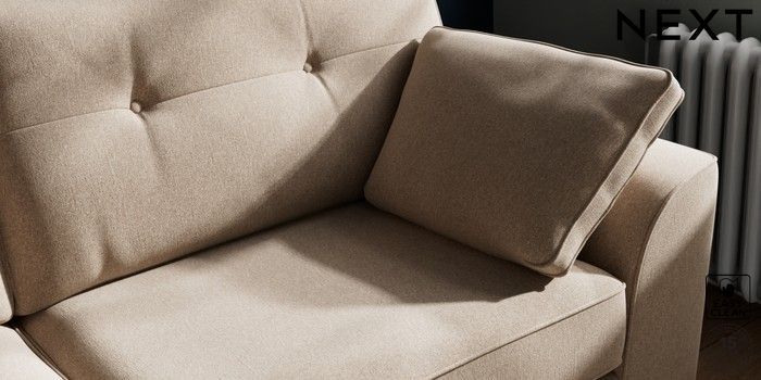 7.3.1 Buy Stamford Buttoned Back 3 Seater Sofa Tweedy Blend Easy Clean Light Dove Natural Large Square Angle - Chrome Metal from the Next UK online shop Click here to use our accessible website