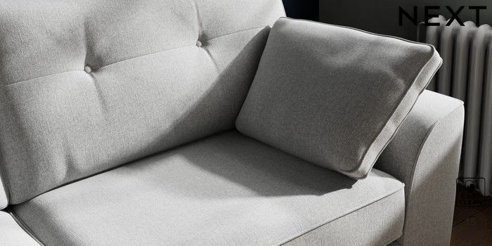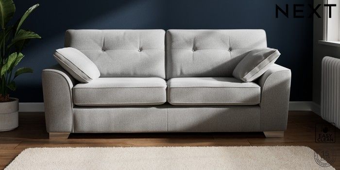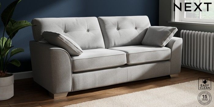 7.2.10 Buy Stamford Buttoned Back 3 Seater Sofa Tweedy Blend Easy Clean Light Silver Grey Large Square Angle - Chrome Metal from the Next UK online shop Click here to use our accessible website