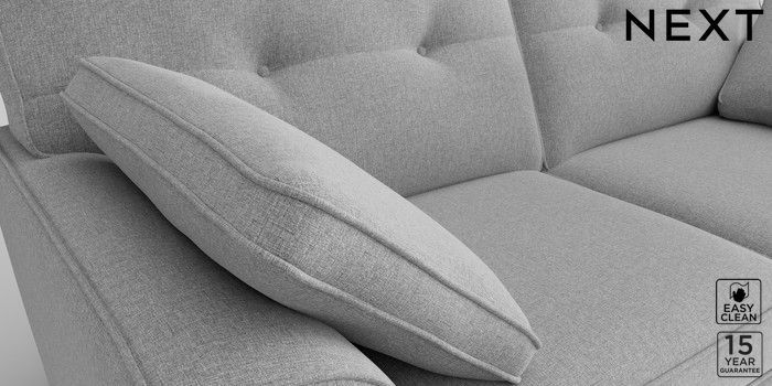 6.11.8 Buy Stamford Buttoned Back 3 Seater Sofa Tweedy Blend Easy Clean Light Silver Grey Large Square Angle - Gunmetal from the Next UK online shop Click here to use our accessible website
