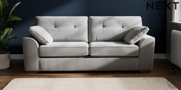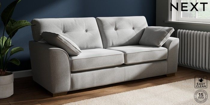 7.2.10 Buy Stamford Buttoned Back 3 Seater Sofa Tweedy Blend Easy Clean Light Silver Grey Large Square Angle - Mid from the Next UK online shop Click here to use our accessible website