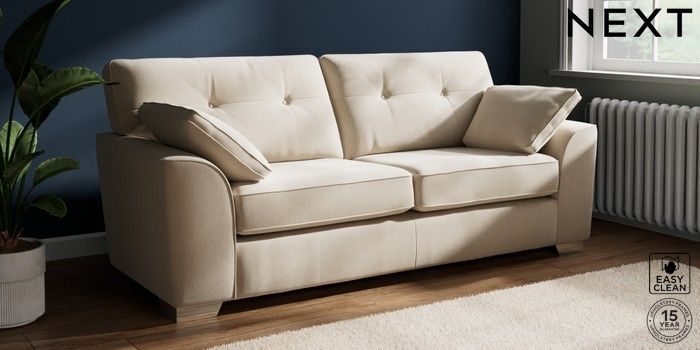 7.3.1 Buy Stamford Buttoned Back 3 Seater Sofa Tweedy Blend Easy Clean Oyster Large Square Angle - Chrome Metal from the Next UK online shop Click here to use our accessible website
