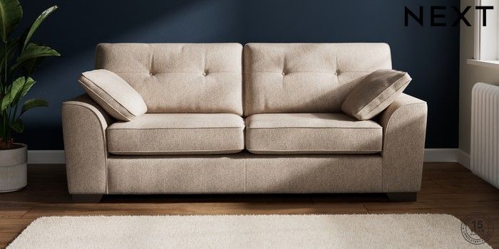 7.2.6 Buy Stamford Buttoned Back 3 Seater Sofa Tweedy Chenille Mid Natural Large Square Angle - Gunmetal from the Next UK online shop Click here to use our accessible website