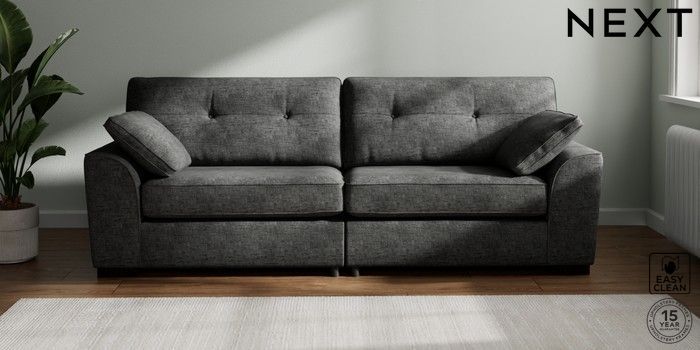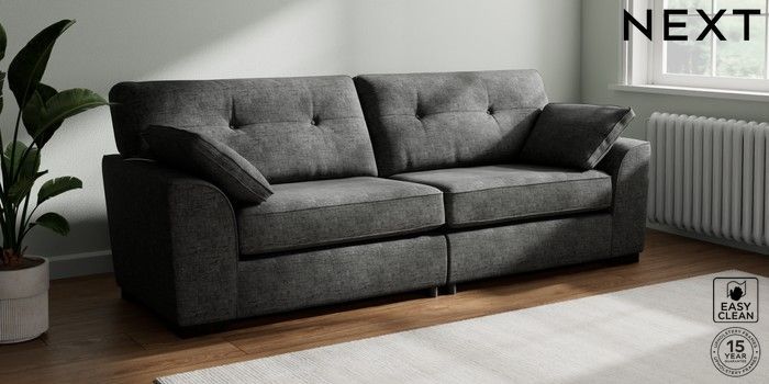 7.2.10 Buy Stamford Buttoned Back 4 Seater Sofa Boucle Weave Easy Clean Charcoal Grey Large Square Angle - Dark from the Next UK online shop Click here to use our accessible website