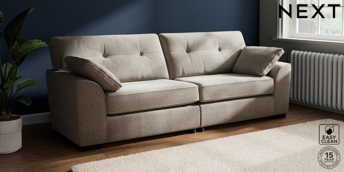 7.2.10 Buy Stamford Buttoned Back 4 Seater Sofa Chunky Boucle Easy Clean Dove Large Square Angle - Dark from the Next UK online shop Click here to use our accessible website
