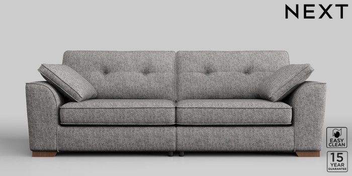 6.10.9 Buy Stamford Buttoned Back 4 Seater Sofa Chunky Boucle Easy Clean Light Grey Large Square Angle - Mid from the Next UK online shop Click here to use our accessible website