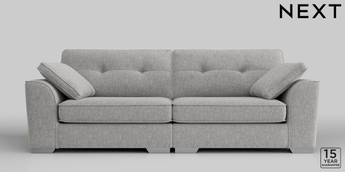 6.11.4 Buy Stamford Buttoned Back 4 Seater Sofa Chunky Chenille Light Grey Large Square Angle - Chrome Metal from the Next UK online shop Click here to use our accessible website